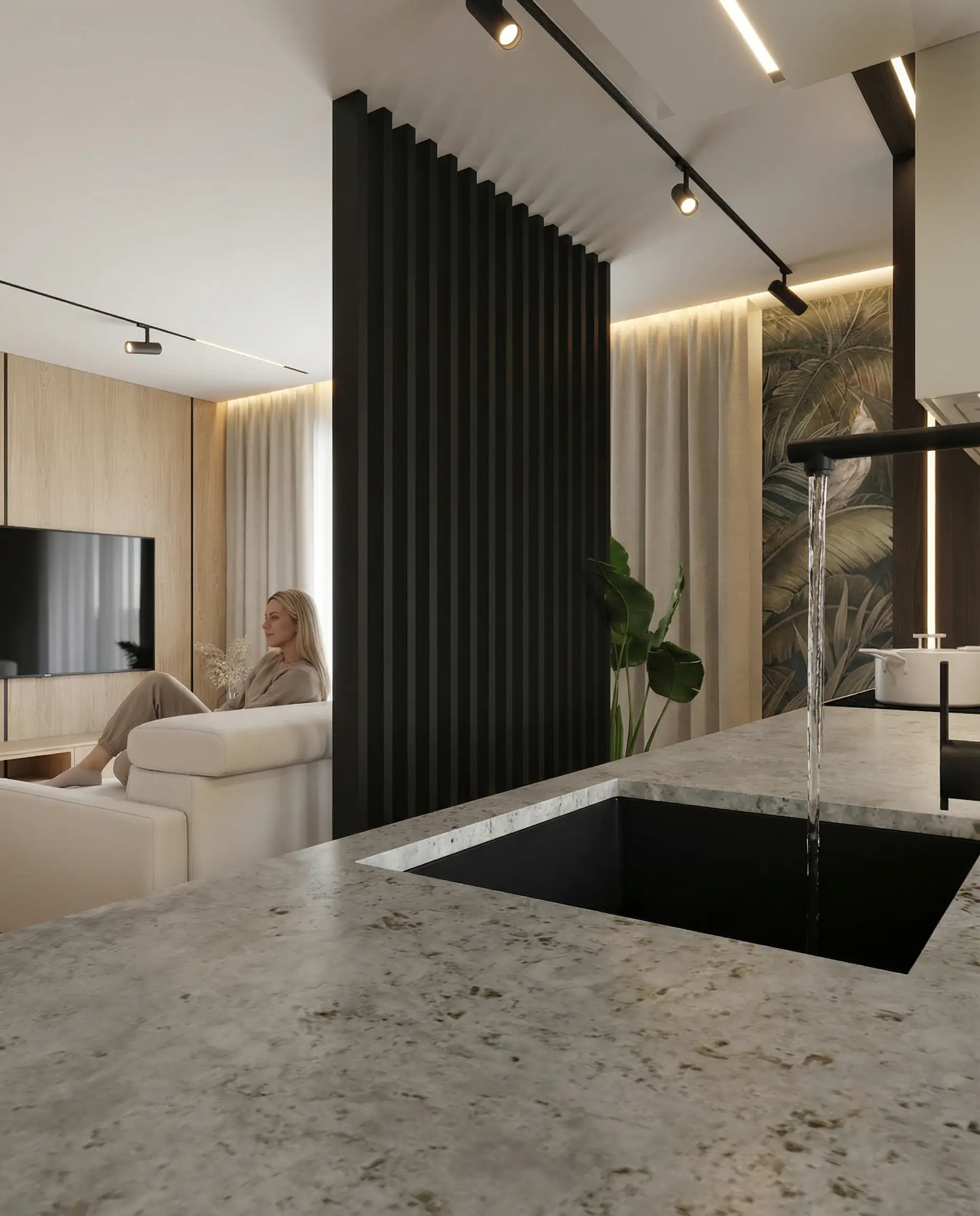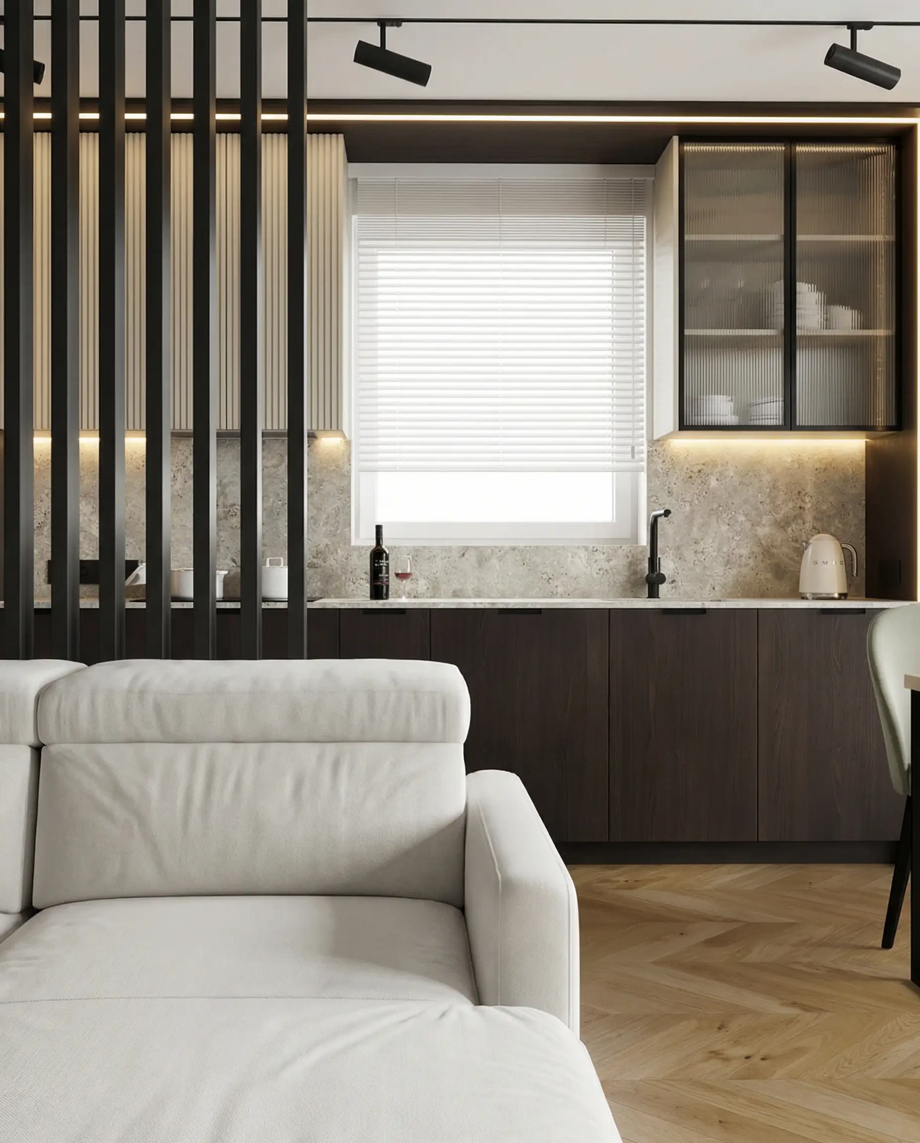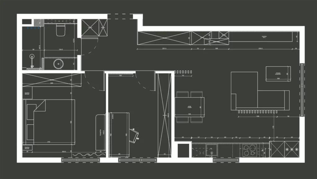 Prezentowane mieszkanie zostało zaprojektowane jako nieruchomość inwestycyjna. Z Inwestorem, panem Tomaszem, współpracowałem już wcześniej przy kilku jego projektach — zarówno mieszkań, jak i domu. W tym przypadku od początku założyliśmy wysoki standard wykończenia jako świadomą decyzję projektową. Celem było pełne wykorzystanie potencjału lokalizacji oraz stworzenie wnętrza, które pozwoli uzyskać możliwie najwyższy czynsz najmu i stabilny zwrot z inwestycji.