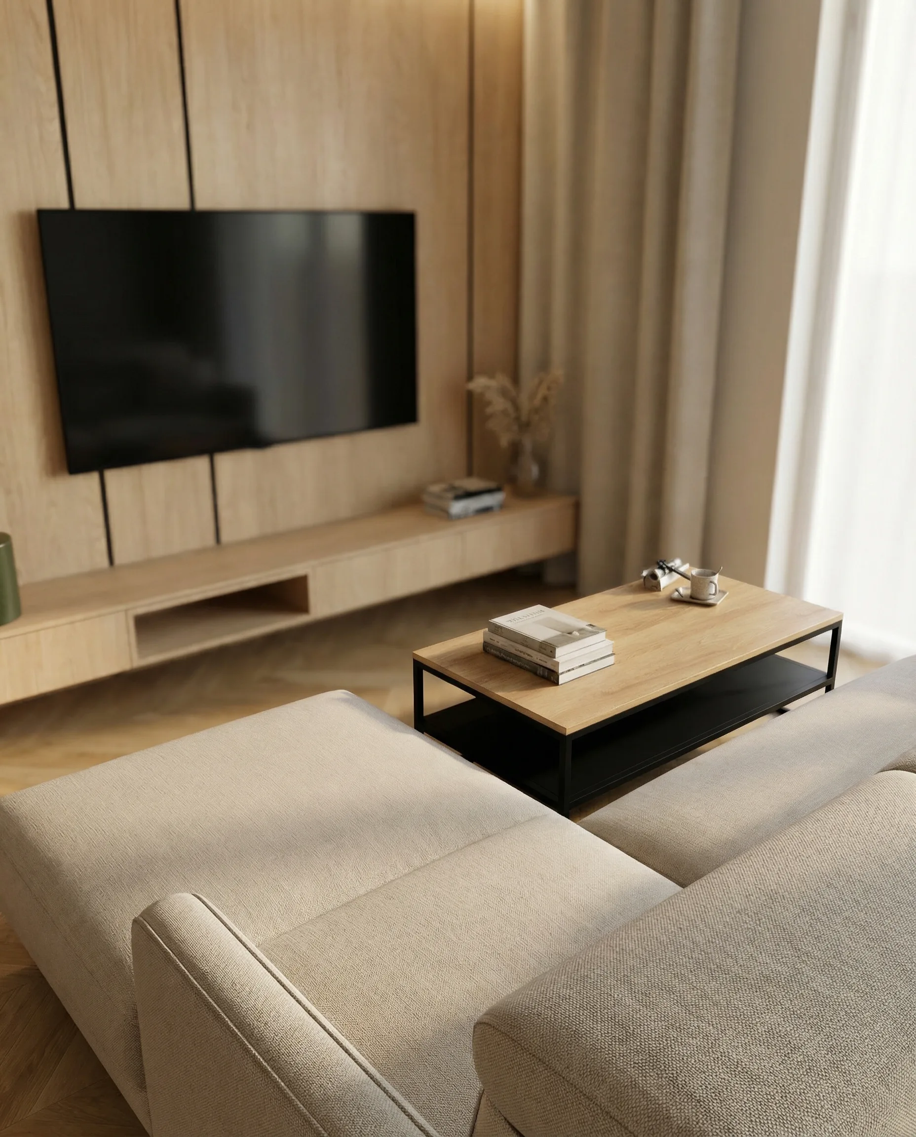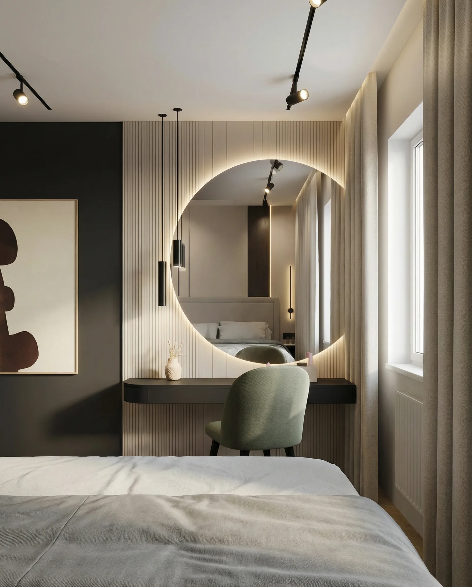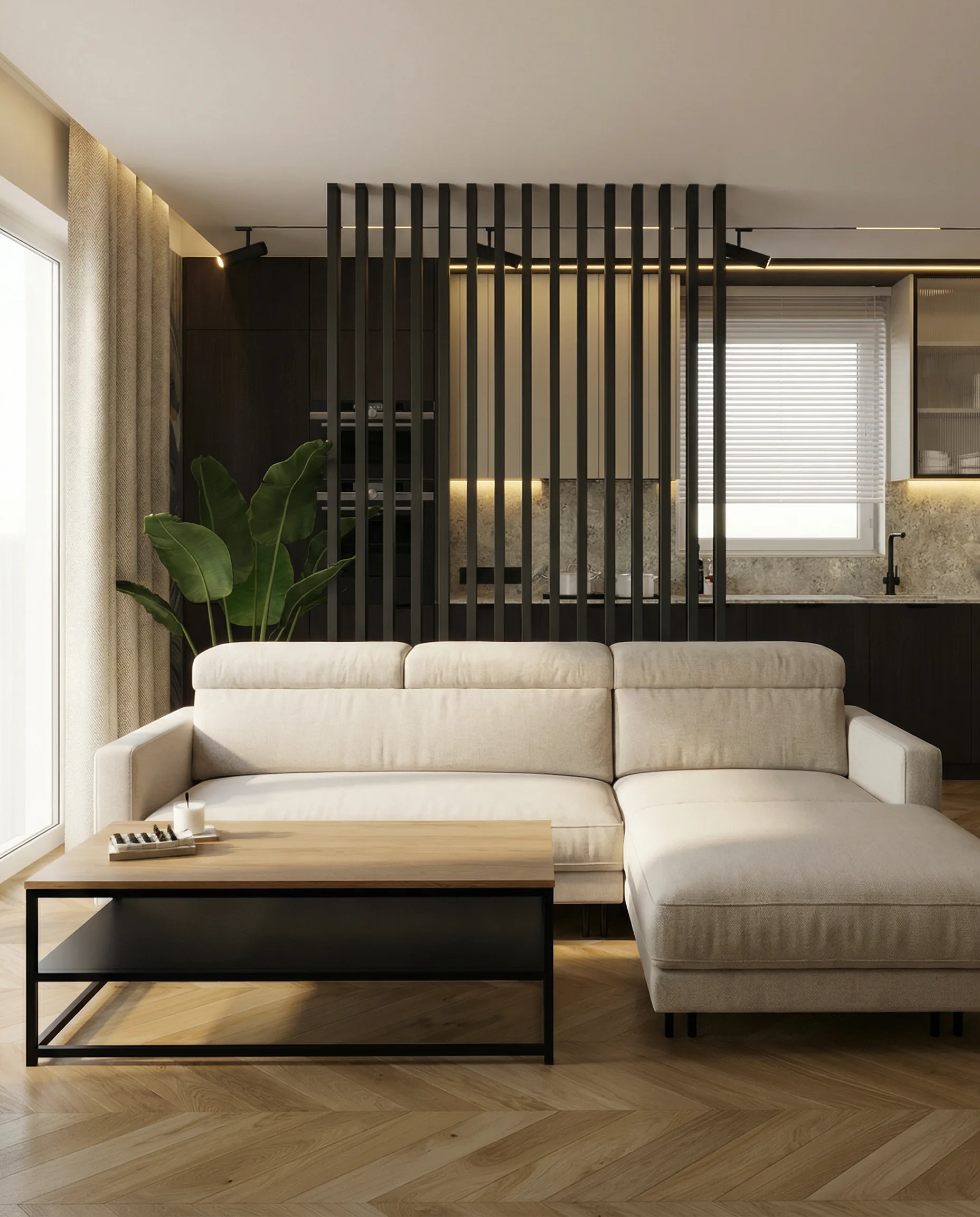 Prezentowane mieszkanie zostało zaprojektowane jako nieruchomość inwestycyjna. Z Inwestorem, panem Tomaszem, współpracowałem już wcześniej przy kilku jego projektach — zarówno mieszkań, jak i domu. W tym przypadku od początku założyliśmy wysoki standard wykończenia jako świadomą decyzję projektową. Celem było pełne wykorzystanie potencjału lokalizacji oraz stworzenie wnętrza, które pozwoli uzyskać możliwie najwyższy czynsz najmu i stabilny zwrot z inwestycji.